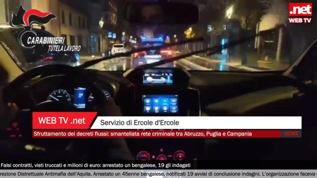 Operazione ad ampio raggio dei Carabinieri del Nucleo Ispettorato del Lavoro di Chieti, coordinata dalla Direzione Distrettuale Antimafia dell’Aquila. Un cittadino bengalese di 45 anni è stato arrestato e tradotto al carcere di Pescara. Contestualmente, sono stati notificati 19 avvisi di conclusione indagini a soggetti ritenuti coinvolti in un’associazione per delinquere finalizzata all’immigrazione clandestina, alla tentata estorsione e alla rapina.