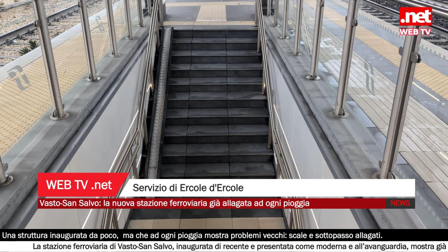 Alla stazione ferroviaria di Vasto-San Salvo, infatti, ad ogni pioggia le scale e il sottopasso dei binari si trasformano in un percorso ad ostacoli: infiltrazioni d’acqua e allagamenti che rendono difficoltoso il passaggio e mettono in evidenza problemi che non ci si aspetterebbe da un’infrastruttura appena inaugurata.