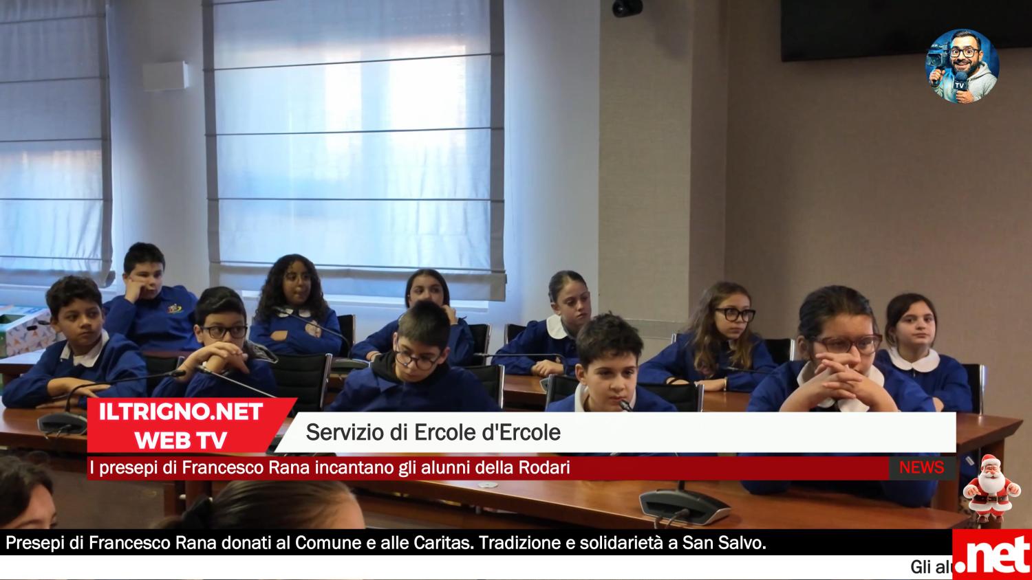 Gli alunni della scuola Rodari del plesso Sant’Antonio hanno potuto ammirare dal vivo i presepi realizzati dal signor Francesco Rana, artigiano che da anni dedica tempo e passione a questa forma espressiva. L’incontro si è svolto nell’aula consiliare del Comune di San Salvo, trasformata per l’occasione in un luogo di dialogo e scoperta.
