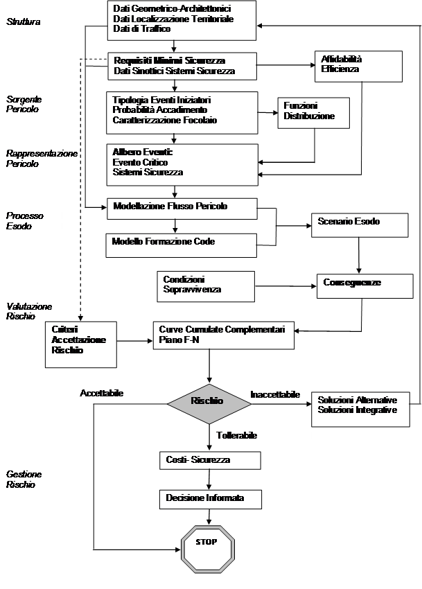 L’evoluzione dei fenomeni di trasporto di massa ed energia e l’entità degli effetti da essi derivanti sulla salute degli utenti e degli addetti al soccorso, condizionate dall’affidabilità e dall’efficacia dei sistemi di protezione e mitigazione adottati, determina il flusso del pericolo nella struttura e le conseguenze sulla popolazione esposta in regioni diverse della galleria .