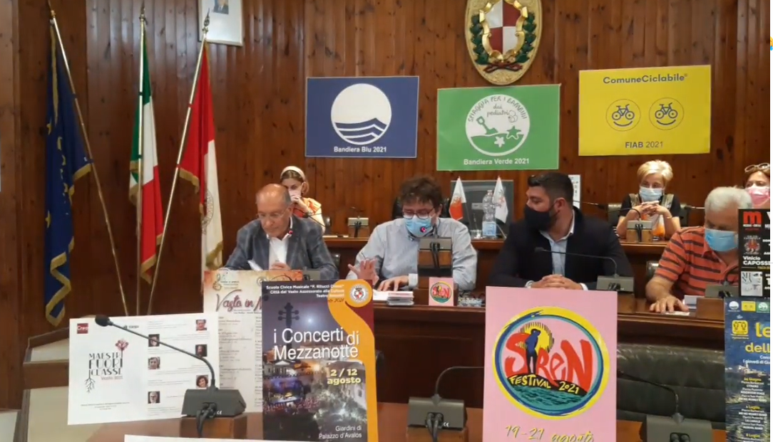 “Gli eventi saranno quasi 150, - ha aggiunto l’assessore con delega al turismo, Carlo Della Penna - prevalentemente caratterizzati dalla musica ed appuntamenti culturali, oltre a quelli dedicati allo sport. Torna il Siren Festival dal 19 al 21 agosto. Attendiamo la presentazione della lineup che avverrà mercoledì prossimo. Ringrazio Louis Avrami, che ha fortemente voluto ripartire con un grande evento da donare alla nostra Città, e a cui vogliamo consegnare un riconoscimento per ringraziarlo per quello che il Siren è riuscito a creare in città. Spazio anche per “Musiche in Cortile” e poi Vinicio Capossela, Frida Bollani, Musiche in Piazza, Vasto in Musica diretta da Lino Molino e Davide Marcone, e Sax Sensation con Elpidio Tornese”.