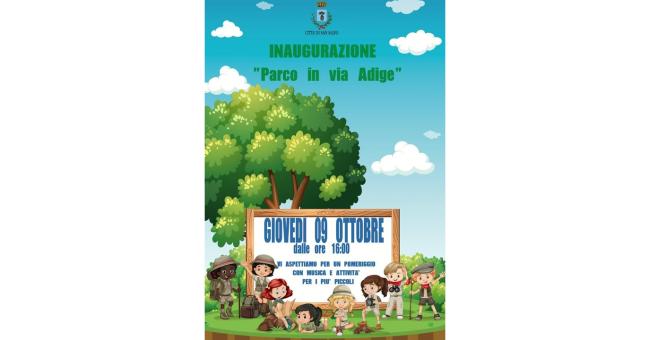 L’Amministrazione Comunale è lieta di invitare la cittadinanza all’inaugurazione del nuovo Parco in via Adige, che si terrà domani pomeriggio alle ore 16:00