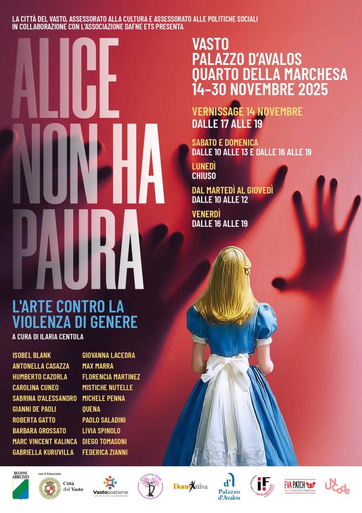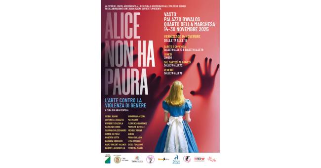 In occasione della Giornata internazionale per l’eliminazione della violenza contro le donne, che si celebra ogni anno il 25 novembre, la Città di Vasto rinnova il proprio impegno nella prevenzione e nel contrasto della violenza di genere attraverso un’iniziativa dal profondo valore culturale e sociale. Nasce così “Alice non ha paura – L’arte contro la violenza di genere”, una mostra d’arte contemporanea curata da Ilaria Centola, promossa dal Comune di Vasto in collaborazione con l’Associazione Dafne ETS, che gestisce per conto del Settore Welfare e Servizi Sociali il Centro Antiviolenza DonnAttiva. L’iniziativa è sostenuta dalla Regione Abruzzo e realizzata in sinergia con il Comitato per l’Imprenditoria Femminile della Camera di Commercio Chieti Pescara. Dal 14 al 30 novembre 2025, l’ala Quarto della Marchesa di Palazzo d’Avalos a Vasto ospiterà le opere di ventiquattro artiste e artisti che, attraverso linguaggi e sensibilità differenti, daranno voce a un messaggio corale di denuncia, memoria e speranza. La mostra sarà aperta al pubblico dal martedì al giovedì dalle 10:00 alle 12:00, il venerdì dalle 16:00 alle 19:00, il sabato e la domenica dalle 10:00 alle 13:00 e dalle 16:00 alle 19:00. Il percorso espositivo si sviluppa come un viaggio emotivo e simbolico che attraversa le molteplici dimensioni della violenza e della rinascita. Dalla condizione di silenzio e invisibilità delle vittime, alla rappresentazione del corpo ferito e violato; dalla voce che rompe il muro della paura fino alla forza della resistenza, della sorellanza e del riscatto. A chiudere il percorso, l’arte stessa si fa testimone e azione: un linguaggio universale capace di denunciare, curare e trasformare. L’iniziativa si inserisce nel quadro di un impegno costante che Vasto porta avanti da anni, in rete con istituzioni, associazioni e forze dell’ordine, per costruire una comunità capace di riconoscere, prevenire e contrastare ogni forma di violenza.