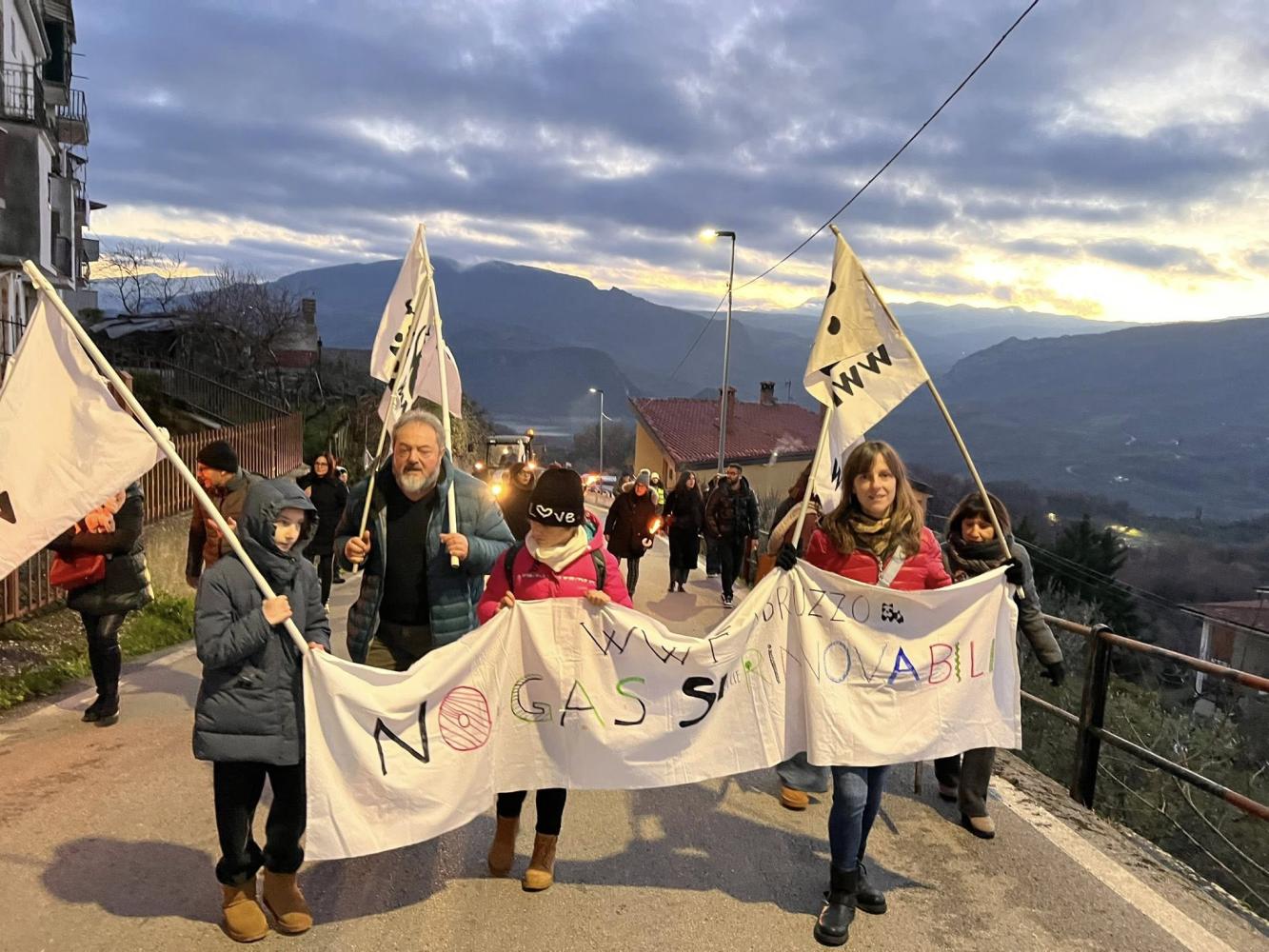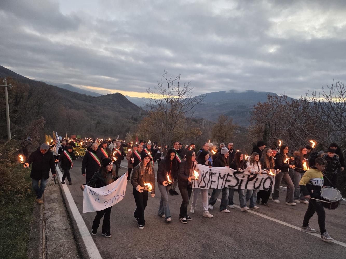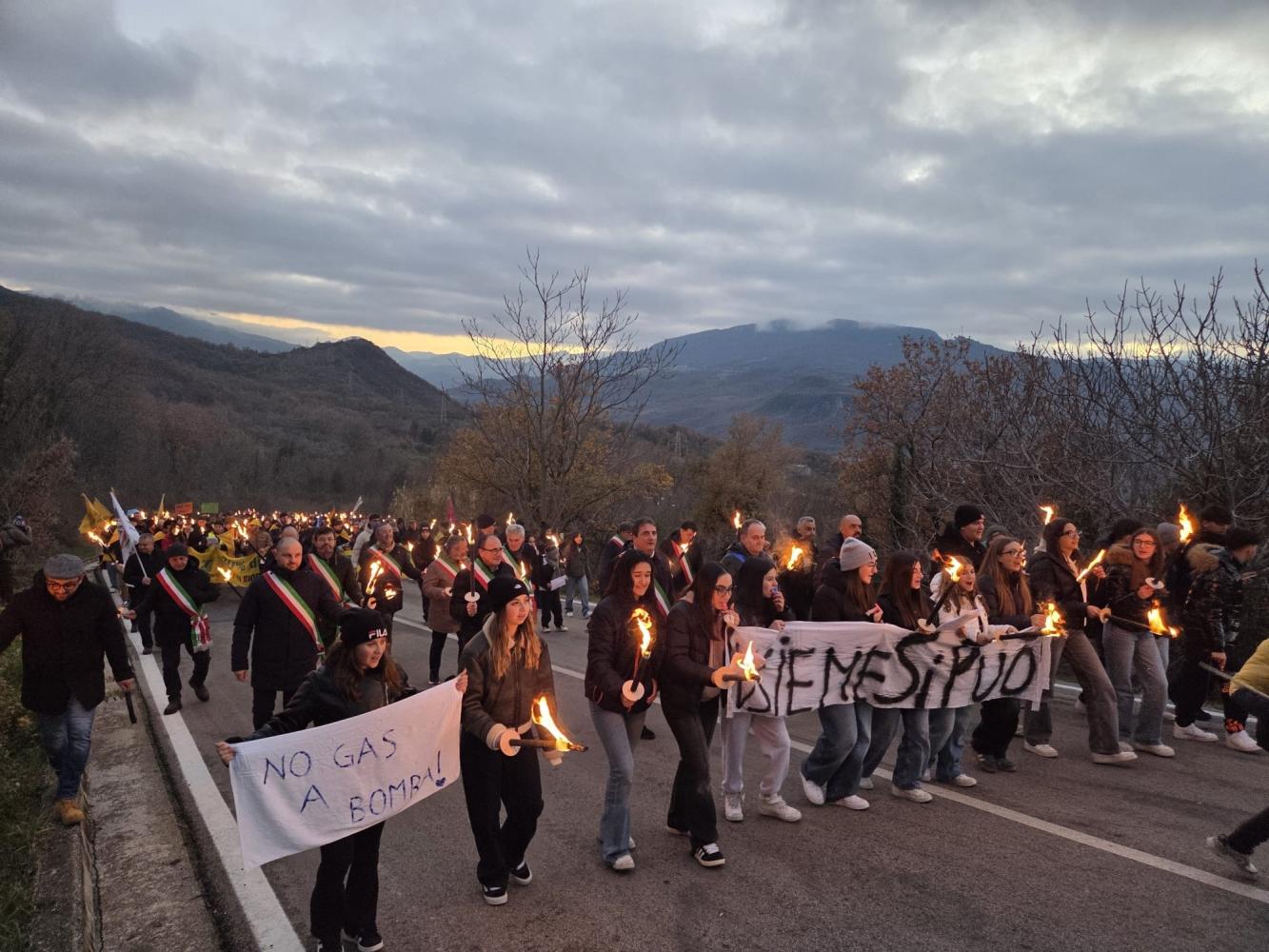 I partecipanti si sono ritrovati in paese per un incontro collettivo e per compattare il fronte della mobilitazione avverso il progetto di estrazione di gas.