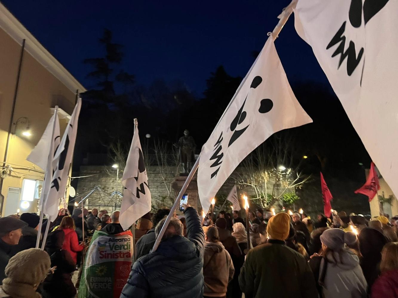 Una fiaccolata, organizzata dal Comune e dal Comitato Gestione partecipata del territorio, è partita dal lago per arrivare in paese. Vi hanno preso parte numerosi sindaci del territorio, consiglieri regionali di Alleanza Verdi Sinistra e Movimento 5 Stelle, Pd del territorio, delegazioni delle principali associazioni ambientaliste, come Wwf, Italia Nostra e Legambiente, rappresentanti di altri sodalizi e cittadini.